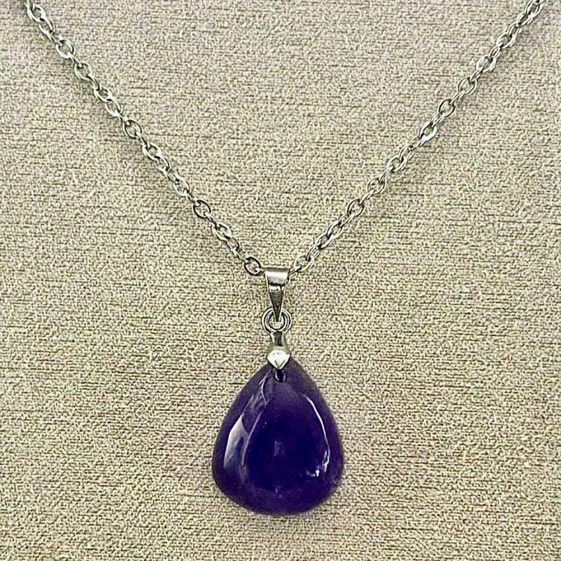 Sublimez votre style avec ce collier raffiné, orné d’une pierre d’améthyste naturelle taillée en forme de goutte. Montée sur une chaîne fine en acier inoxydable, cette création allie élégance et bienfaits énergétiques.